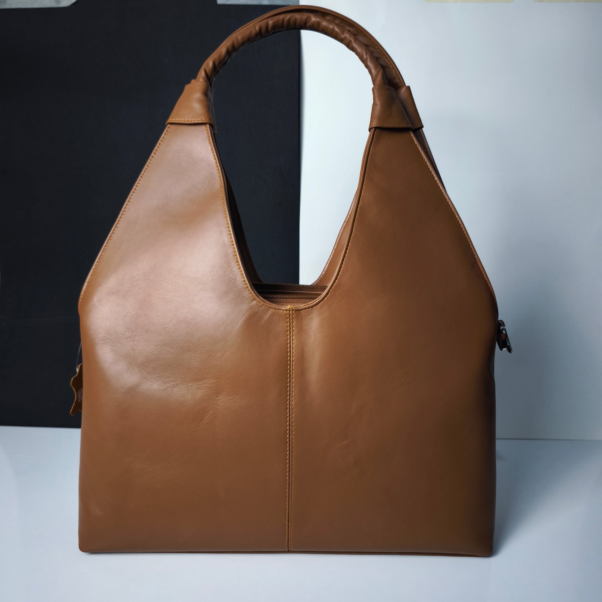 Yumuşak dokulu, sade ve şık tasarımıyla gün boyu rahatça kullanabileceğiniz geniş hacimli bir çanta. Dolgulu sapı ele konfor sağlar; fermuarlı ağız yapısı eşyalarınızı güvenle taşır.