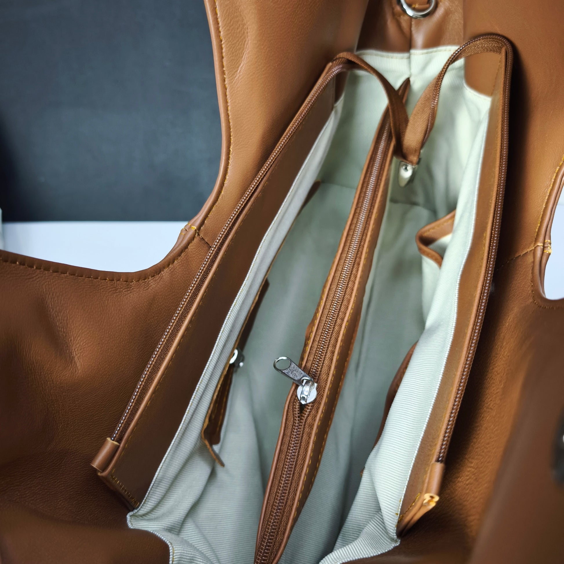 - İçte fermuarlı bölme + düzenleyici gözler
